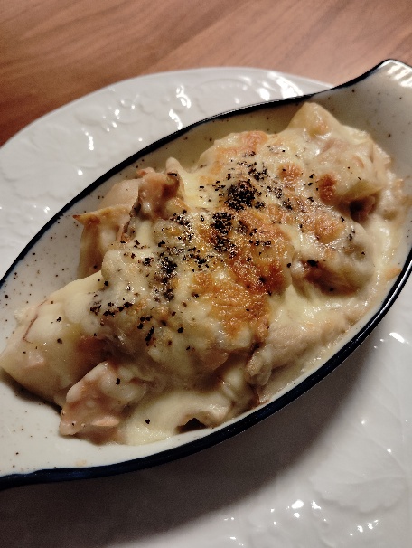 しょっぱい鮭もグラタンに加えると良い働きをします。豆乳を使うと、牛乳とは違ったおいしさが楽しめます。