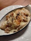 ■今月のレシピ~鮭とさつまいもの豆乳グラタン~ ●材料●(4人分) ・塩鮭・・・・・・・・・・・・・・・・・2切 ・玉ねぎ・・・・・・・・・・・・・・・1/2個 ・しいたけ・・・・・・・・・・・・
